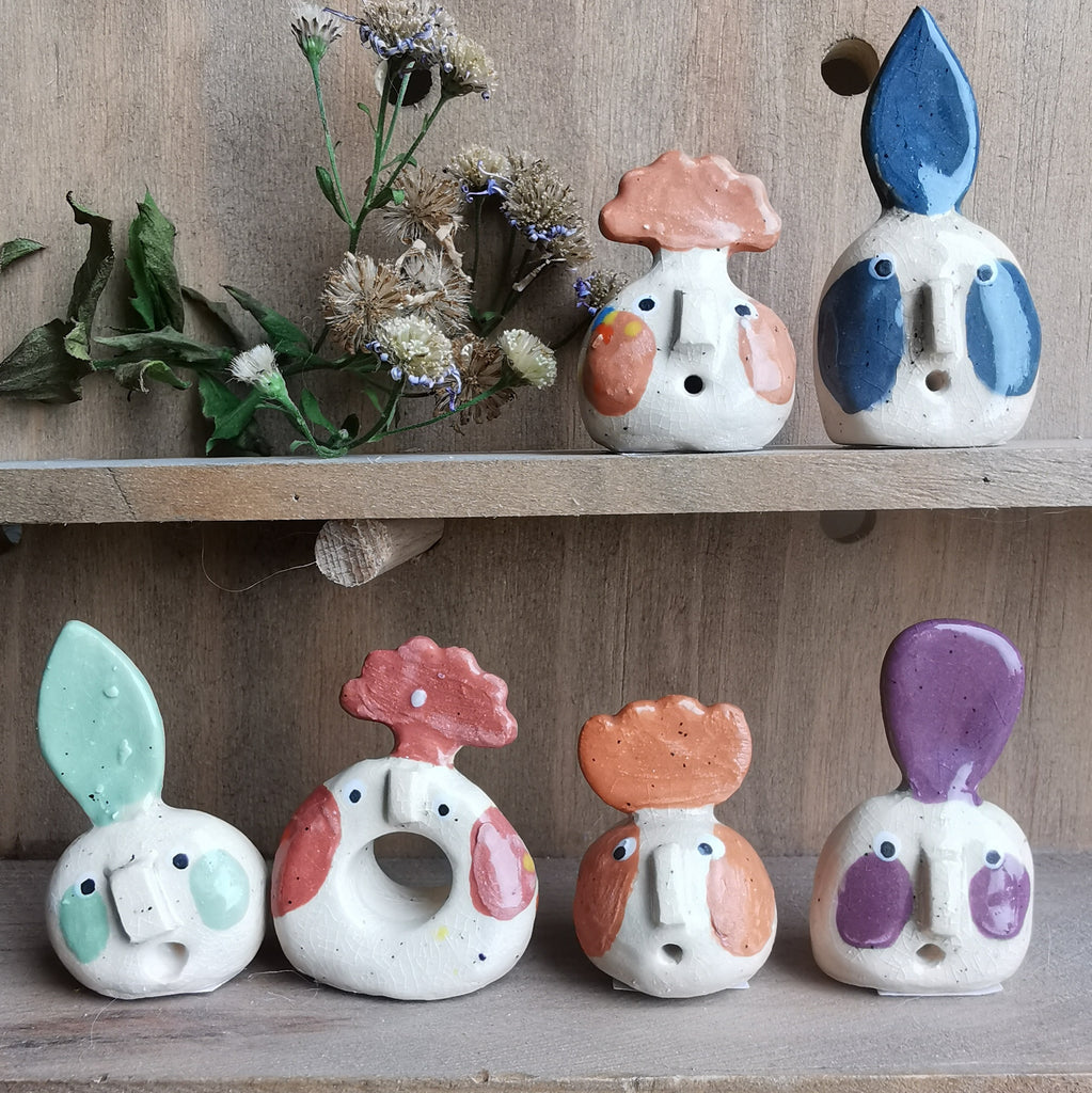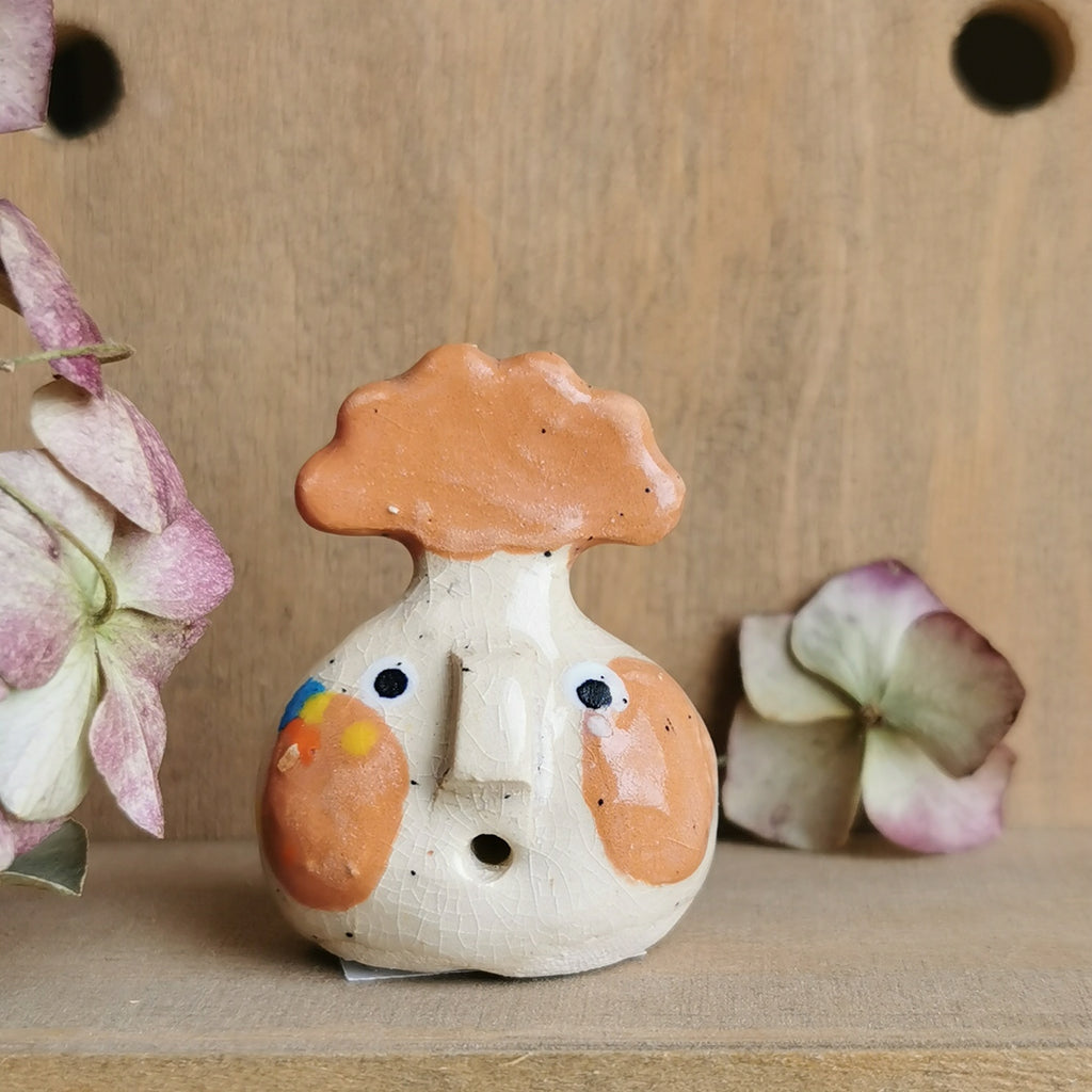 Figurine décorative en céramique écrue et corail.